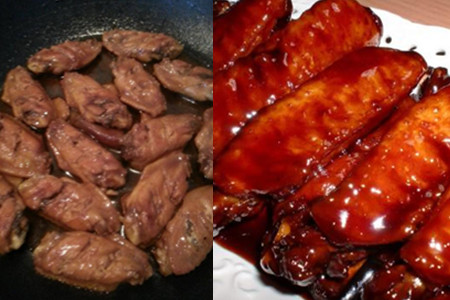 5、这时候再往锅中下入洗净的鸡翅,一面煎至变色后,用铲子翻面继续煎制。鸡翅熟了便可出锅食用。如果不确定鸡翅是否熟透,可以用筷子插入鸡翅中,如果很容易穿透便是熟了。
