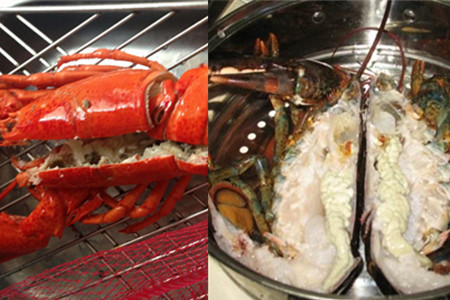 4、将适量的清水倒入蒸锅之中,水滚开冒泡后。把龙虾放入蒸锅中,大火蒸上十分钟左右。具体蒸制的时间,要根据龙虾的体积大小来决定。