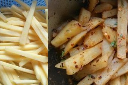 说完甜食,我们就能来说说辣的。麻婆马铃薯条可是非常好吃的一道菜。首先,将马铃薯削皮、洗干净、切成条。然后泡在盐水中,去除涩味,放入冰箱冷藏。在锅中热一点油,将马铃薯油炸一会,沥干油捞出。在锅中倒入豆瓣酱、蒜末,翻炒一小会,倒入马铃薯条,加水,焖到水开,就可以吃了。