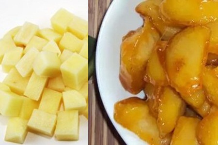 拔丝地瓜肯定大家都吃过,但拔丝马铃薯应该很少人尝试过。拔丝马铃薯的做法是效仿拔丝地瓜的。首先,将马铃薯蒸熟、剥皮、切块备用。在锅中热一点油,放入白糖、红糖、水,小火熬制成糖浆。糖要多,否则糖浆难以成形。糖浆熬好后,将马铃薯裹上一层面粉,放进糖浆里面翻炒几下,使每块马铃薯都能裹上糖浆即可。