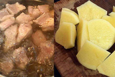 咖喱炖牛肉是一种一道非常传统的进补食品,而且牛肉汤,在我国已经存在了很长时间,牛肉有非常好的滋补功效,也非常适合在秋季食用。新鲜的牛肉洗干净后切成块状,然后放进锅内,用热水焯一下,不要直接就拿来煮。然后准备两个马铃薯,去皮后切成滚刀块,然后放进水里防止氧化。做咖喱一定要有洋葱的,所以我们也需要切一些洋葱条备用。