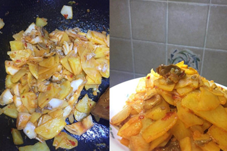 辣白菜土豆片不要水分太多,可以用大火炒菜。加入少量精盐和鸡精,翻炒几次之后再放入适量的孜然粉,等到土豆片炒熟就可以拿出来了。
