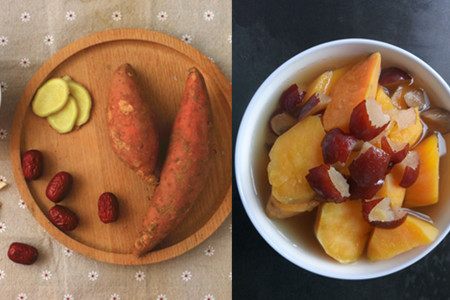 红枣地瓜糖水,是广东糖水的一种,不仅味美还能养颜。第一步,准备好地瓜、红枣、姜以及红糖。