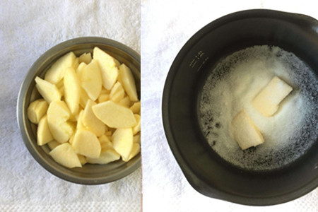 苹果是一种很快就会氧化的食物,所以我们需要快速的将苹果切成薄片。然后准备一个平底锅,把苹果片放进去,然后加适量的冰糖,开始加热的时候,用慢火就可以,等待苹果出汁后就可以稍微大一些。一边加热一边搅拌,直到苹果煮软就可以。面粉加少量酵母,用温水和面,揉成光滑的面团之后盖上一层湿布,放置到暖和的地方进行发酵。
