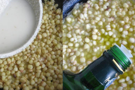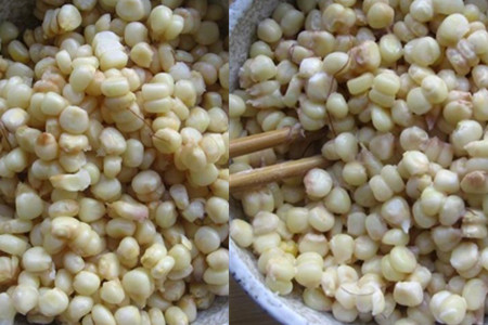 食材:熟玉米2根、牛奶、橄榄油、淀粉、白砂糖。