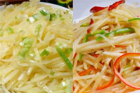 酸辣土豆丝是属于四川的特色菜,也是我们饭桌上人见人爱的一道家常菜。我们不仅可以在家里能见到它,而且在饭馆也是能见到它的踪迹的。虽然酸辣土豆丝并不是一道很昂贵的食物,但是它做起来就没有那么容易了,这要有经验的师傅才能做出来,让土豆吃起来脆脆的。很多人以为土豆吃起来是脆的就以为没有熟,其实不是的,这就是酸辣土豆丝的特点。