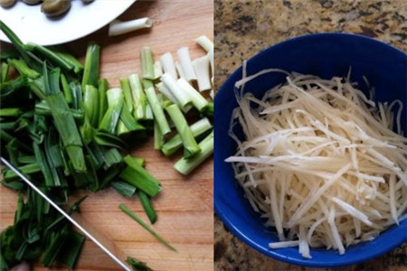 我们在做酸辣土豆丝的时候也要注意一些小细节,一些特别让人忽略的地方。在做酸辣土豆丝之前,我们一定要注意土豆的筛选,一般要选择新鲜而且含水量较多的土豆。土豆在处理过程中也要注意,先把土豆平均切成两半,再把其中一半拿出来切,这样不仅好切,而且还可以切得很薄,这就为接下来切成丝做了一个很好的铺垫。