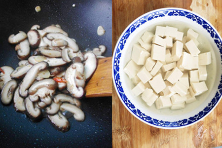 3、把新鲜的豆腐切成小粒,把它浸泡在淡盐水之中,浸泡大概十分钟左右即可。豆腐泡盐水,既可去除豆腐的豆腥味,又可以使豆腐不容易破碎。