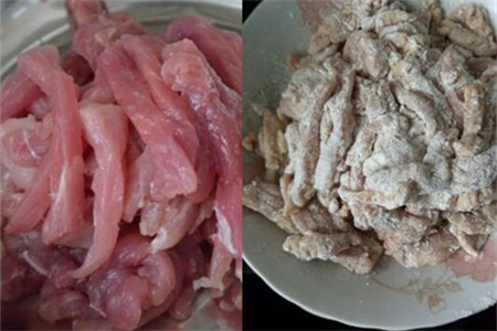 准备好里脊肉之后,我们还要准备玉米淀粉、蛋清、姜、黄瓜、和白砂糖。在准备好以上的物品之后,我们就可以开始糖醋里脊的制作了。首先,我们将买来的新鲜里脊肉先切成大片,再切成竖条。尽量将里脊切得比较整齐,这样会使这道菜更美观,也让人更有食欲。然后将切好的里脊肉放入一个碗中,加入姜片去掉腥味,再加入蛋清、玉米淀粉和白胡椒粉。