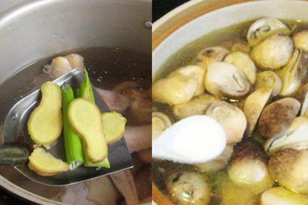 食材:草鸡900克、草菇200克、姜、料酒、葱、盐。