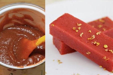 山楂糕的做法简单,首先取新鲜的山楂果,洗净、去籽,放入料理机中捣成果泥。取少许淀粉、水、面粉、糖放于果泥中,搅拌均匀,形成糊状物质,注入模具中,放入蒸笼里蒸上20分钟即可。