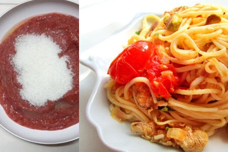 山渣也可作为酱料,如山楂酱意面。首先,将山楂切片,加糖、柠檬酸放于料理机中打成果酱。烧一锅开水,将面放于锅中,充分搅拌,直到面七分熟。将面捞起来之后,迅速在冷开水中过一遍,然后再捞起来。在锅中热一点橄榄油,将面和果酱倒下去,小火加热,搅拌直到面完全熟透即可。