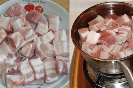 做红烧肉的第一步是先去菜市场挑选新鲜的猪肉,尽量早一点点去,不然好的就被别人给选走了。将买回来的五花肉放在盆子里,然后再烧一点开水,烧好后就把水倒在盆子里,把五花肉清洗干净,尽量多洗几遍。第二步是把五花肉捞起来,拿在冷水龙头处冲凉,然后把五花肉切成一坨一坨的,但是要注意厚度适中 ,然后再把它放在开水锅中烫一分钟捞起来。