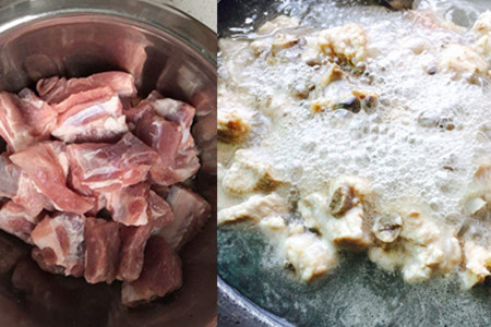 step1、对排骨进行处理,先用清水清洗两遍,然后选择用热水焯烫一遍,之后将其捞起,沥干。