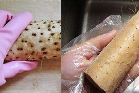 在处理淮山药时,尤其是去皮这一步骤时,应戴上手套,以防出现皮肤过敏的现象。