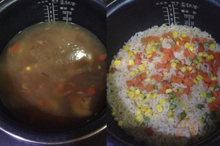 大米要提前泡半小时以上才会比较容易煮熟。蔬菜不要放得太早,否则会变黄。