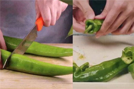 想要做这道菜,首先我们需要选用新鲜的青椒。青椒的选用要注意以下几点:首先,要注意青椒的表皮是否腐烂,腐烂了的青椒就不要购买了,买回家里的话要及时的丢掉,青椒的腐烂也非常的快,所以青椒一次的购买不能够太多,建议每次买可以食用完的量就好了。购买青椒的时候还要注意青椒的新鲜程度,可以选择到菜市场去购买新鲜的青椒。