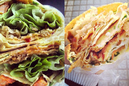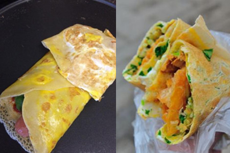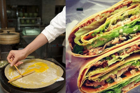 煎饼果子,一道经典的地道传统美食,同时也是天津的传统小吃,据传是清朝末期山东省一位姓刀的师傅定居天津后将它改良发展起来的。不仅天津人爱吃,其他的地方各种各样的煎饼也是备受欢迎的。