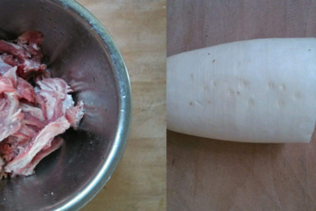 做羊肉汤一定要搭配白萝卜,所以我们在准备羊排的适合,不要忘记买根白萝卜。羊排的膻味非常浓郁,可能很多人接受不了,我们需要清洗干净羊排,然后直接泡在清水中5个小时才可以。之后要放在热水中焯一遍,这样既可以有效减少膻味,也能去除血沫子。白萝卜去皮,这个没有固定要求,只不过去了皮的白萝卜口感更好一些,然后用刀将萝卜切成小块。