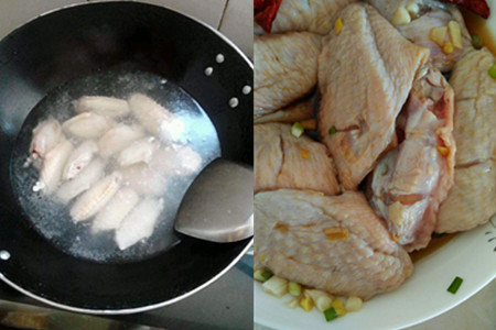 3、将适量的清水倒入煮锅之中,水煮开沸腾后。把鸡翅全部放入沸水中,焯煮一遍水,以析出其中的血水,但是鸡翅不能焯水太久。鸡翅一定要事先焯一遍水,这样才能去除掉它的腥味和血水。