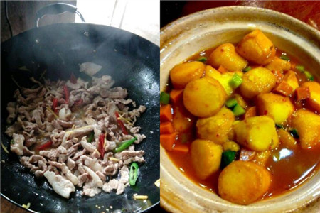剩下的油也不要浪费,我们可以将瘦肉倒入其中翻炒至白色,小虾仁等其他的配菜一同翻炒一遍。等到所有的食材都翻炒之后,就可以将所有的食材倒入锅内,开大火烹煮。等锅内的食材基本沸腾之后,加入小半碗的水,然后等水翻滚。之后我们就可以直接将锅内的所有食材倒入砂锅里,砂锅需要及时的预热,否则会让菜品受凉,影响口感。