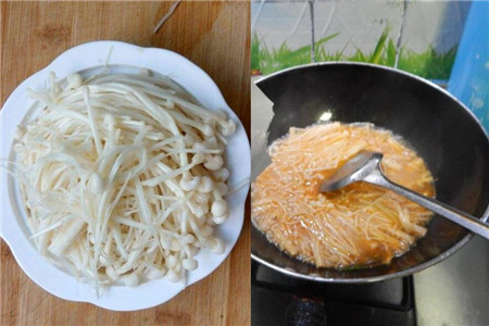 准备好了这些制作必备材料之后,我们就可以开始制作日本豆腐煲。首先是将金针菇清洗一遍,因为新鲜的金针菇都会带有一定的泥土,即使没有泥土,金针菇上也会藏着一些杂质,这些杂质会严重影响到金针菇的口感。用清水冲洗一遍之后,还需要将金针菇放入锅内,加水煮沸过滤一遍,这样做可以让金针菇更好的煮软,让日本豆腐煲的整体口感更佳。
