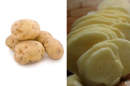 新鲜健康的马铃薯是球形或扁圆形状的,外表无毛光滑,有些品种也有覆盖一些稀疏的柔毛。大多数我们常见的马铃薯外皮是白色或棕色的,薯肉则是嫩黄色的。但事实上还有七彩马铃薯,因此马铃薯也有其他一些颜色的外皮和薯肉。以我们比较常见的土豆为例,新鲜的马铃薯表皮光滑,呈自然的颜色状态,切片是湿润且色泽鲜亮的。