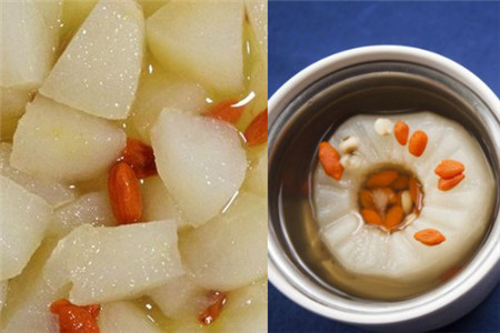 我们还知道的有冰糖雪梨百合汤,它是比较常见的名点。雪梨中含有大量的苹果酸,柠檬酸,维生素,萝卜素,是非常养生的美食。冰糖雪梨百合汤有清热化痰,润肺清燥。止咳,养血生肌的作用。它对患有急性气管炎和呼吸道感染的病人可谓是上等佳品,吃了对他们是有一定要好处的。我们在家里就可以试着做,其实做法也不难。