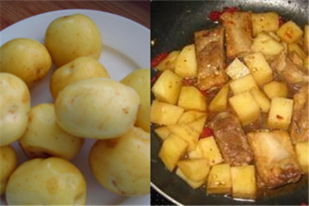 南方人在吃排骨炖土豆的时候,都会选择比较大一点的土豆,把土豆切成砣,然后再用它来炖排骨。但是东北菜当中的土豆炖排骨,他们选用的土豆大多数都是比较小的土豆,而且是直接用一个完整的土豆来炖排骨。