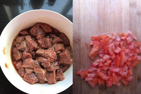1、准备的食材有面条、牛肉、番茄、黄油。