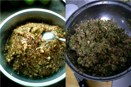 然后要处理食材,将肉放入搅拌机中搅成肉泥,然后芹菜要选用比较嫩的部位,把它放进锅里煮一下,再把水挤出来,太多的水饺子包起来容易散开。再把它剁碎,放入酱油和盐。把鸡蛋放进去搅拌,然后用手稍微抓抓,让馅料更加均匀入味一点。为了保证馅料的咸淡适宜,可以先尝一下,再适量的添加调料。