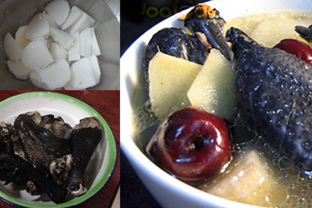 将山药和乌鸡都切成块状洗干净,然后将它们放入炖锅里面,加入水和姜片,选择中火炖煮80分钟,等到乌鸡肉都松软的时候,就差不多了。