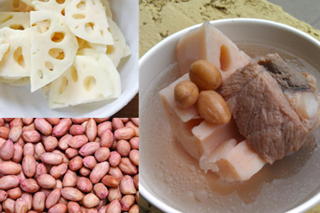 首先把排骨放入锅里面加水煮,等到水煮开的时候,将上面的泡沫捞出来,然后放入姜片、莲藕、花生米炖1个半小时。