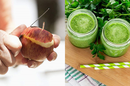 第三种是综合健康蔬果汁。需要准备的食材有一个苹果、八十克青椒、一百一十克苦瓜、一百二十克芹菜以及一百五十克黄瓜。具体的做法如下: