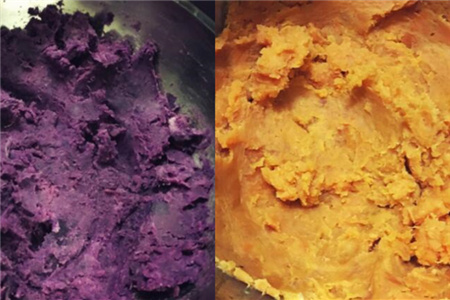 因为是在家自己制作,所以这个配方中的白糖比较少,如果是比较爱吃甜食的朋友可以适当多加一些白糖。先要将材料由生变熟,普通的做法需要将芋头、山芋、紫薯洗干净后隔水蒸煮。不过这样比较消耗时间,有一个简单的方法可以快速的将这些材料变熟。