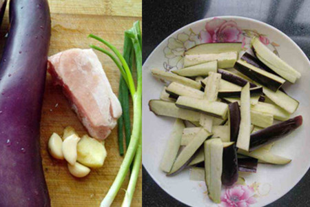 猪肉切成丝,然后放在碗里备用。茄子洗干净之后,用刀先切成长条,然后再切成段,这样做菜也容易熟。准备一些葱花和蒜末,然后锅底放油,加热后倒入葱花的蒜末爆香,可以多放一些食用油。之后把切好的猪肉放进去,快速翻炒不要弄糊了,等到猪肉变白,就可以把茄子倒进去了,可以少加一些水防止炒糊。