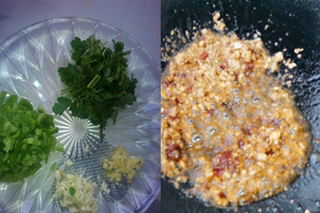 翻炒几分钟之后,茄子就会变软,这个时候加一些豆掰酱、鸡精和蚝油,精盐可以不用放了。大概炒十分钟,茄子就会完全熟了,然后放点儿香菜,倒在米饭上就可以。