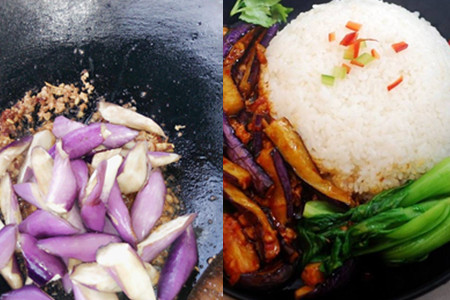 盖浇饭主要看用什么菜肴铺盖在米饭上,如果害怕自己做不好,可以做一个简单的肉沫茄子盖饭。茄子热量低,而且含有丰富的铁元素,经常食用非常健康,而且肉沫茄子的做法也相对简单,用到的原料仅仅是茄子和猪肉。开始做的时候,我们可以先把米饭放进电饭锅了蒸,这样我们做好菜了,直接就能浇在米饭上了,然后准备一个大茄子和少量猪肉。