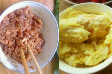 在调好适当的米浆之后,我们要准备一些铺在肠粉上的食材。我们家买来的猪肉剁成猪肉沫,然后加入盐、葱姜蒜沫、料酒、酱油和淀粉腌制,腌制十分钟之后,就可以拿来使用了。在腌制猪肉的期间,我们将喜欢吃的蔬菜都剁成蔬菜碎,放在一旁备用,接着我们将米浆均匀的铺在蒸肠粉的容器上。然后我们将猪肉末、熟鸡蛋和一些蔬菜碎均匀的铺在米浆上。