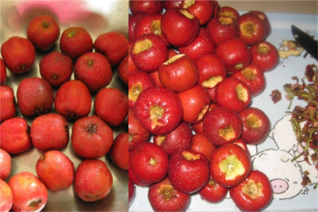 买好新鲜的山楂之后,将山楂用水冲洗干净。然后我们将山楂从中间切开,将中间的山楂籽去掉,然后我们用竹签将山楂一个一个的串好,尽量选择比较大的山楂,这样串起来也比较整齐好看。串的时候注意不要将山楂串烂了,这样会影响山楂的美观。