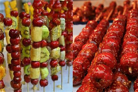 冰糖葫芦在我国有些悠久的历史,它起源于宋朝,从古至今流传下来,受到非常多人的喜爱。冰糖葫芦的名字的由来是因为它的制作大多是由冰糖做成的,而一个个山楂穿在木棒上像葫芦一样,所以人们叫它冰糖葫芦。冰糖葫芦不仅有些可爱的外观,还有着酸酸甜甜的可爱,所以非常的受人喜欢。
