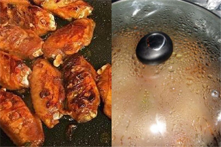 可乐倒进去之后就把锅盖盖上,同样是火不要开得太大,中火就差不多了。等待锅里面的可乐快要被烧干的时候,我们就要倒入生抽,生抽可以让可乐鸡翅的颜色更加的好看,但是不能够倒的太多,因为倒得太多的话,可乐鸡翅很有可能会变苦。