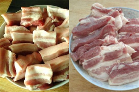 选择好了五花肉之后,我们将买回来的五花肉检查一下,看看它们的表皮的细毛是否处理干净了,如果没有处理干净,我们要对五花肉的皮进行第二次的处理。在处理干净细毛之后,我们将五花肉切成厚片,切好之后,我们将五花肉进行冲洗,冲洗干净之后,要用布将五花肉表面的水分擦拭干净,注意要减少五花肉水分,制作出来的粉蒸肉会更加的美味。