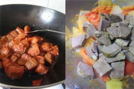 我们把炒好的牛肉盛起来,另起锅放一点植物油,把西红柿放进去。在炒西红柿的时候,用锅铲把西红柿捣成泥,再把炒好的牛肉加进去,还有盐,胡椒粉,干辣椒,清水。开大火煮十几分钟,再开小火煮一会儿准备收汁,收完汁,西红柿牛肉就完成了。西红柿牛肉是非常有营养价值的,可以强生健体,美容养颜,驱寒,非常受女性朋友的喜欢。
