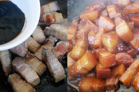 接着兑入适量清水没过肉块,大火煮沸后转中小火炖十五分钟。十五分钟后,将山药块下锅,加盖继续中火炖半小时。半小时后,调入适量食盐,炒匀,转至大火把汤汁收干后关火。生抽与老抽的比例为3:1。炖五花肉加冰糖能够使肉块颜色更亮,口感更好。