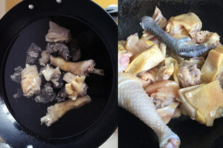 铁锅放少量食用油,然后加一些葱花,炒香之后把鸡块倒进去翻炒,再倒一些生抽。大概炒十分钟就可以转入砂锅了,鸡肉炒时间长也容易老,肉会变得不好吃。停火后倒进砂锅里,加一些精盐和蚝油,然后用勺子搅拌一下,用中火慢慢炖。做鸡汤的时候不要着急,炖的时间长,肉才会好吃,汤才会更浓,鸡肉的营养会很好的融入汤里。