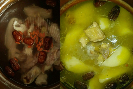 等待第一次烧开之后,打开锅盖,小心汤汁不要溢出来,再煮二十分钟就可以把山药放进去了。山药还很容易熟的,慢慢炖半个小时就可以停火了,再焖一会儿才可以喝。