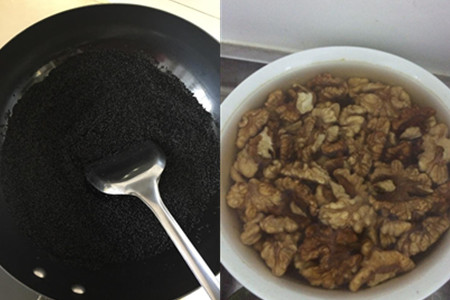 2、先将买回的黑芝麻挑出其中的杂质和泥沙,放入擦净水分的炒锅之中。小火慢慢地翻炒,翻炒出香味后,便可关火盛出放凉。