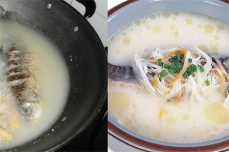 鲫鱼汤是一道很平常的家常菜,但是它具有养生的作用。鲫鱼汤的选材非常的重要,一定要挑选新鲜的鱼,熬制出来的汤才会鲜。在处理的时候,一定要清洗干净,不要留有血丝儿和内脏,不然熬制出来的汤会有腥味。把炒锅烧热,加入适量的油,在把鲫鱼放在里面,用小火慢慢煎,两面都要煎成金黄色,再把大葱,生姜加进去,然后再加点清水。