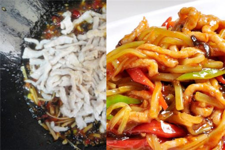 我们可以自己制作酱料,在准备一个小碗,把生抽,蚝油,醋,豆瓣酱,白糖,盐放在碗里,然后用勺子搅拌均匀。先把炒锅预热,再倒一点油进去,然后再把生姜,大蒜,葱放进锅中爆炒。等炒出香味时,就可以把腌制的肉倒进去,继续翻炒均匀。等肉炒成白色时,就可以把木耳和酱料加进去,再继续翻炒,待鱼香肉丝炒熟后就可以出锅了。